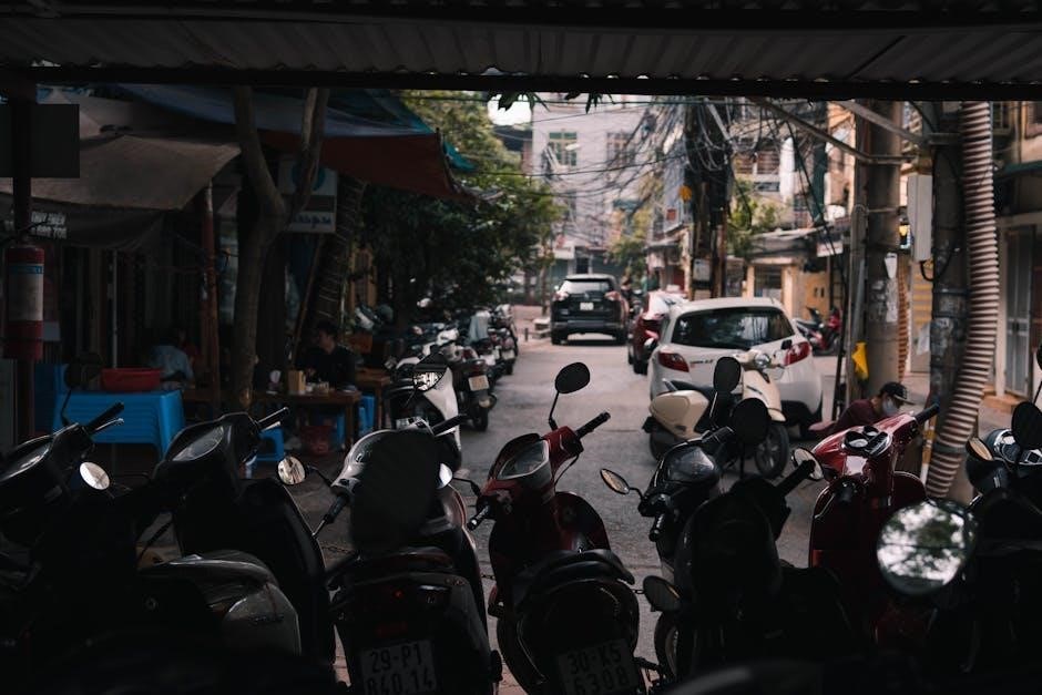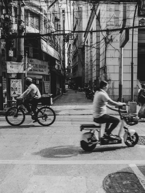 Electric scooter wiring diagram PDFs frequently include voltage and current ratings crucial for component compatibility and safety. Voltage‚ measured in Volts (V)‚ indicates electrical potential difference‚ commonly 36V‚ 48V‚ or 52V/60V in modern scooters. Current‚ measured in Amperes (A)‚ signifies the flow of electrical charge; typical values range from 10A to 20A‚ with higher amperage for powerful motors.